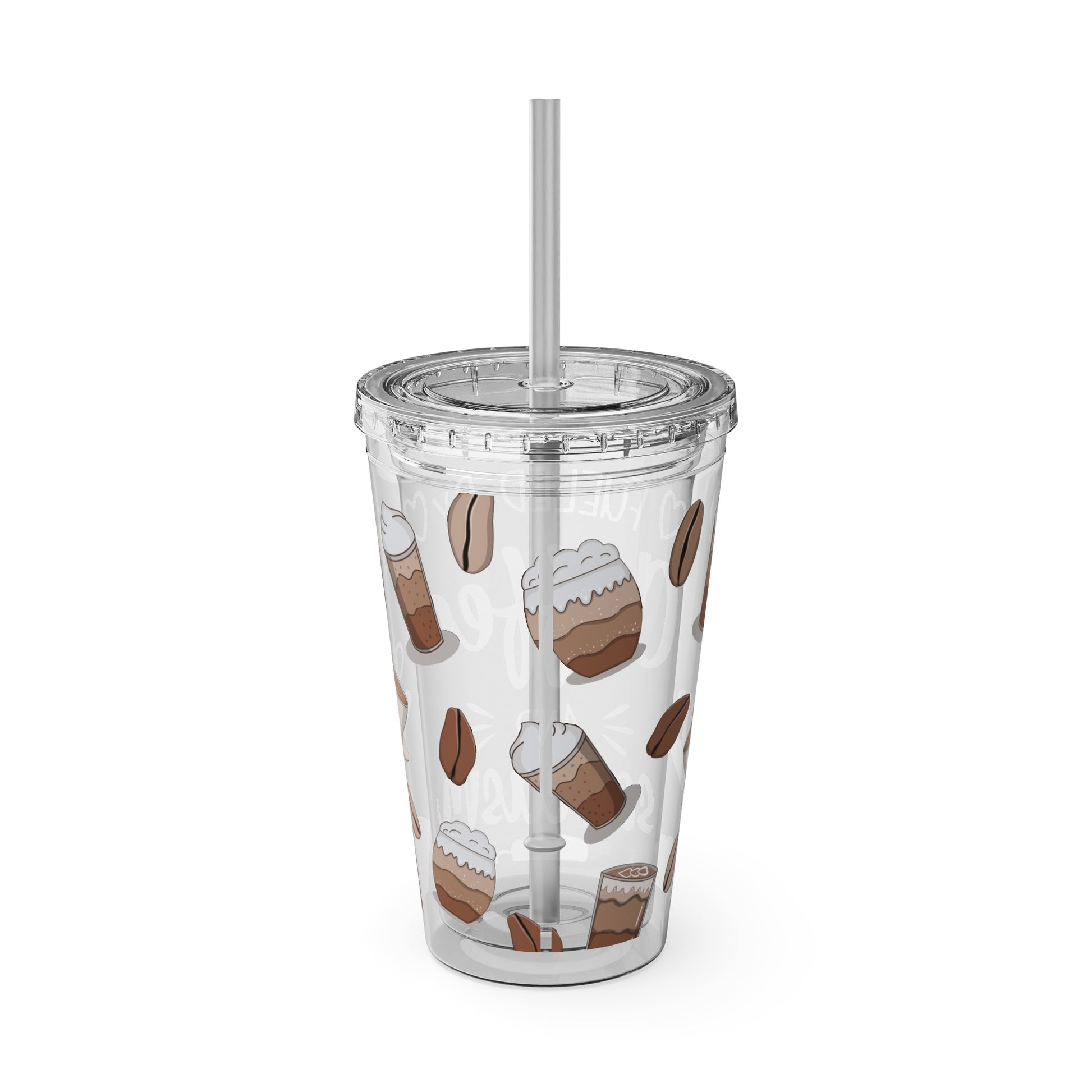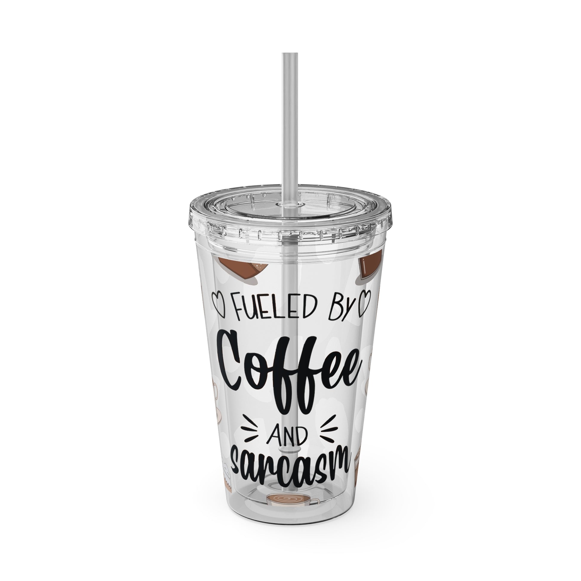 Fueled by Coffee and Sarcasm Tumbler | 16oz Acrylic Cup with Lid & Straw for On-the-Go Humor